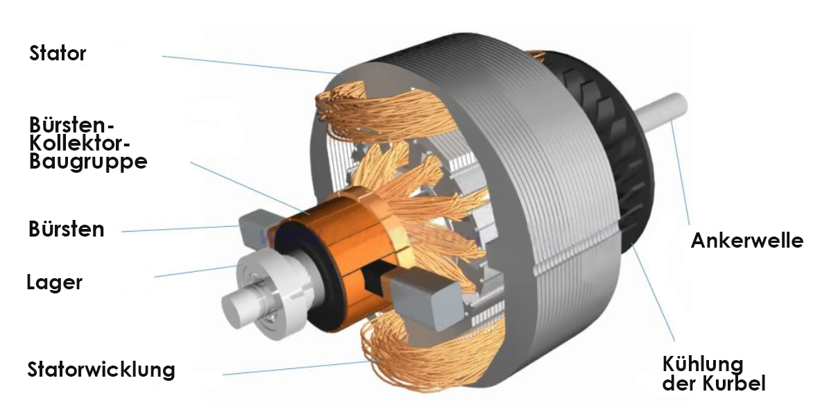 - Verschleiß oder Beschädigung von Teilen des Elektromotors: Bürsten, Wicklungen, Kollektor;