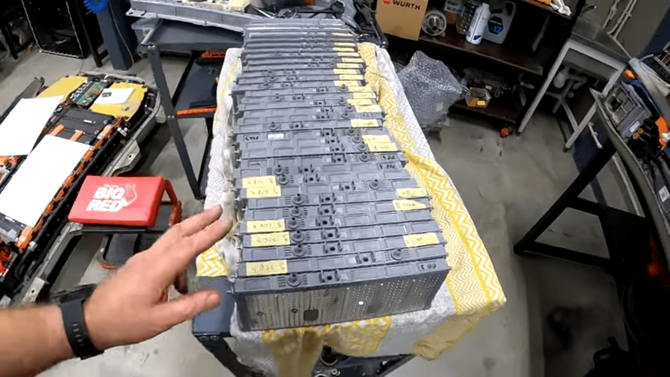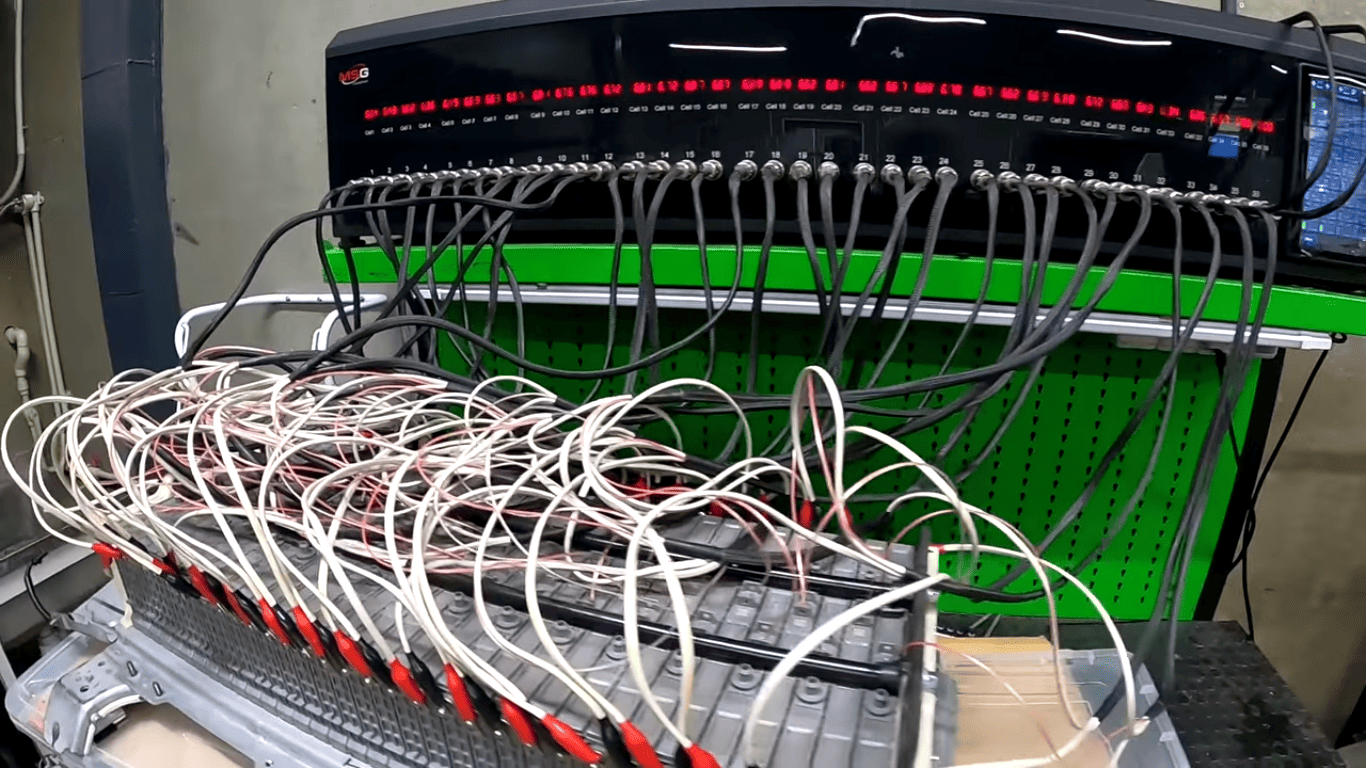 Nach mehreren Lade-/Entladezyklen wurde festgestellt, dass nur 9 von 34 Batteriezellen für die weitere Verwendung geeignet waren. Der Rest musste ausgetauscht werden. Zu diesem Zweck verwendeten wir geprüfte und wiederaufbereitete Batterien aus unserem Austauschfonds. Wir bauten die Batterie zusammen und testeten sie erneut. Das Gerät zeigte einen leichten Unterschied zwischen den Zellen - eine solche Hochspannungsbatterie funktioniert nicht schlechter als eine neue.
