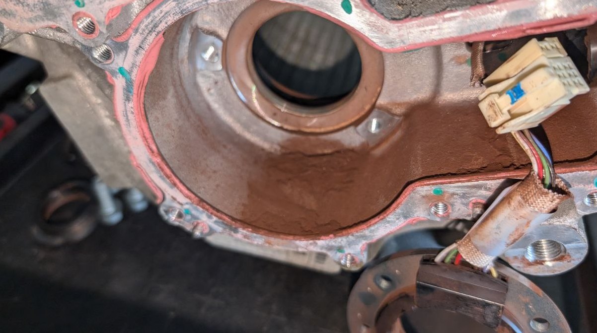Deshalb haben wir mit dem Elektromotor begonnen, und das nicht umsonst. Es sei gleich darauf hingewiesen, dass bei diesen Autos der Elektromotor separat ausgebaut werden kann, ohne das Getriebe zu entfernen. Das Bild, das wir in der Mitte sahen, überraschte uns nicht; das war schon einmal passiert. Auf dem Lager der Hauptwelle, an ihrem Sitz – war immer etwas Schlamm vorhanden, aber es gab dort keine Feuchtigkeit. Das Innere des Motors war absolut trocken.