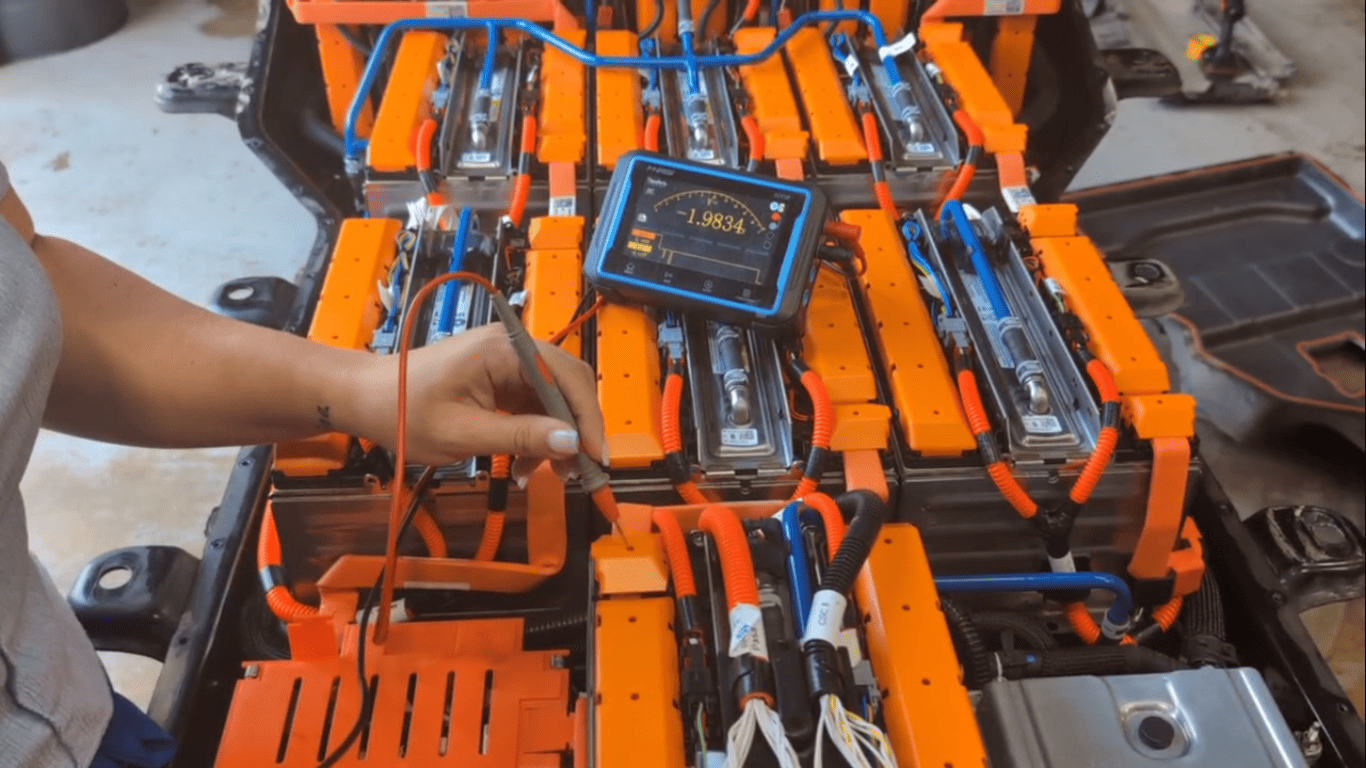 On the dismantled battery, each battery module was tested with a multimeter. The situation was disappointing: on average, the voltage at the contacts of each cell did not exceed 2V (despite the fact that this is less than the rated voltage of one battery). All the modules were approximately equal, except for one - it had even lower values. So, we need not only to charge but also to balance the high-voltage battery.