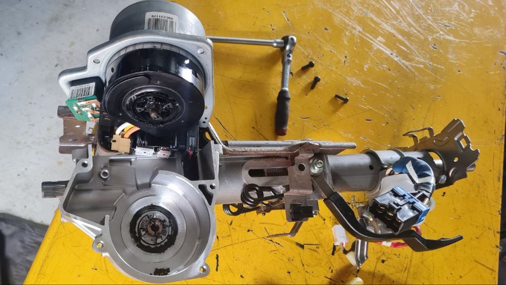 After detailed diagnostics, we dismantled the steering column and cross member, which allowed us to gain full access to the EPS mechanism. Since the knocking was localized in the steering column (the drive star of the electric power steering, which is responsible for transmitting torque from the motor-reducer to the steering shaft, was worn out), a new part was installed, fully compatible with the original unit.