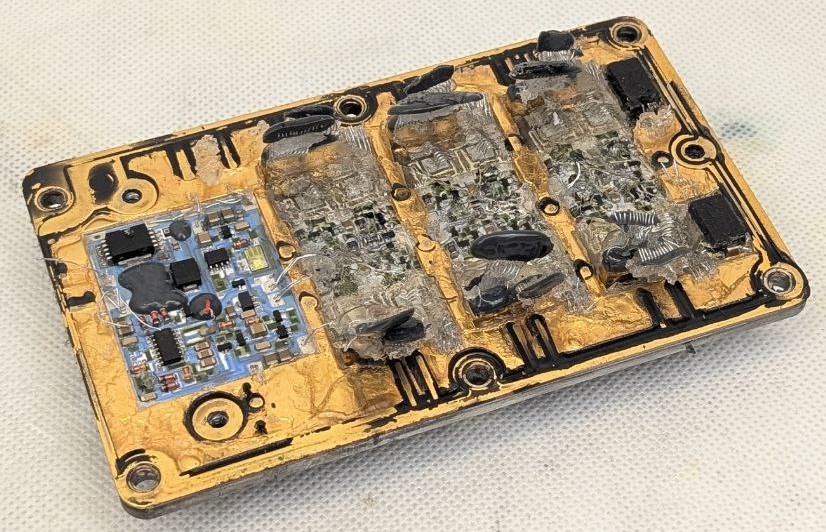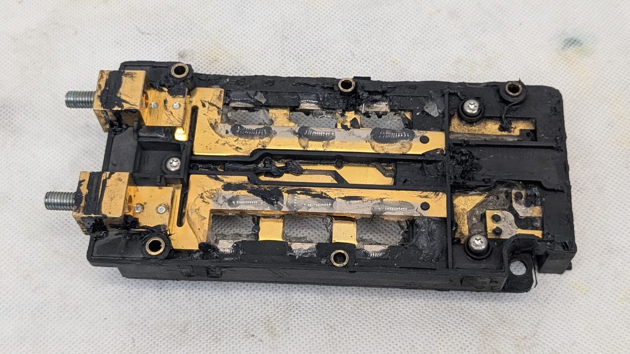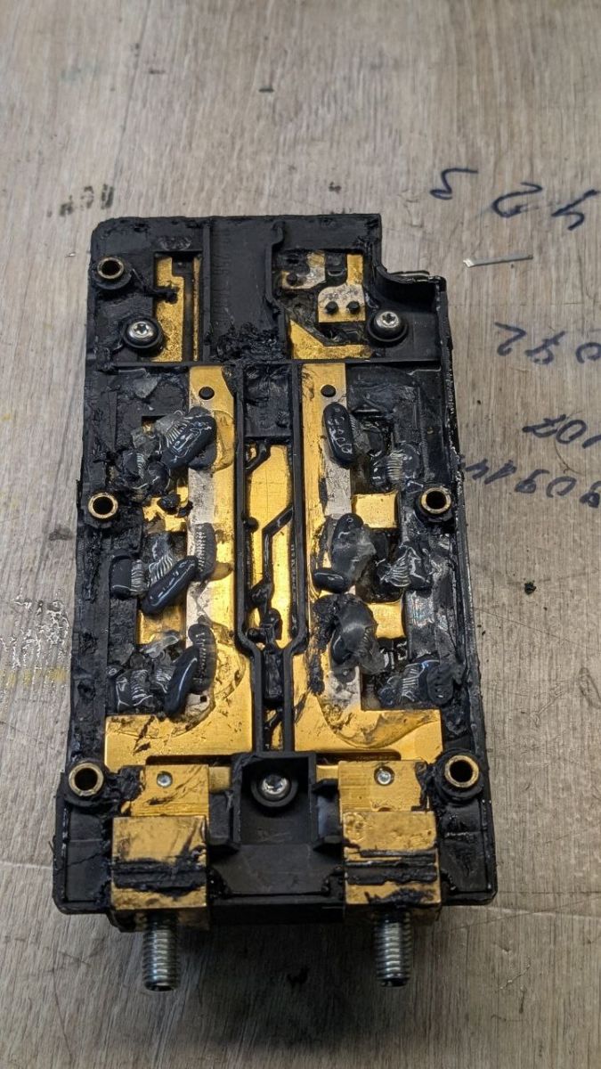 Les éléments de puissance ont été recouverts d'un silicone spécial afin d'assurer leur résistance à la chaleur, leur protection contre les vibrations et leur longévité. - Restauration de la structure. En raison de l'accès difficile, il a fallu ouvrir et soulever le bus de puissance, puis restaurer soigneusement la configuration d'origine.