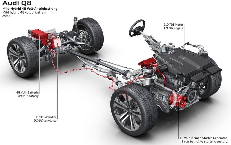 Майлд-гибриды можно рассматривать как нечто среднее между гибридом и классическим авто, можно – как развитие системы «старт-стоп». Как и другие современные гибридные машины, они могут быть как бензиновыми, так и дизельными, поскольку для установки системы нужны минимальные изменения в конструкции. Достаточно подключить к уже готовому двигателю 48-вольтовый стартер-генератор – при помощи приводного ремня, как прочее навесное оборудование. При этом в автомобиле остается стандартный, 12-вольтовый стартер – он запускает холодный мотор.