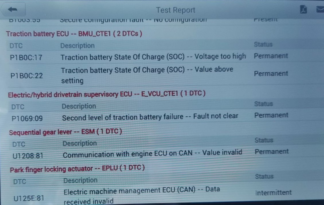 - считывание ошибок BMS (Battery Management System) — система зафиксировала код неисправности, соответствующий превышению напряжения на одной из ячеек;